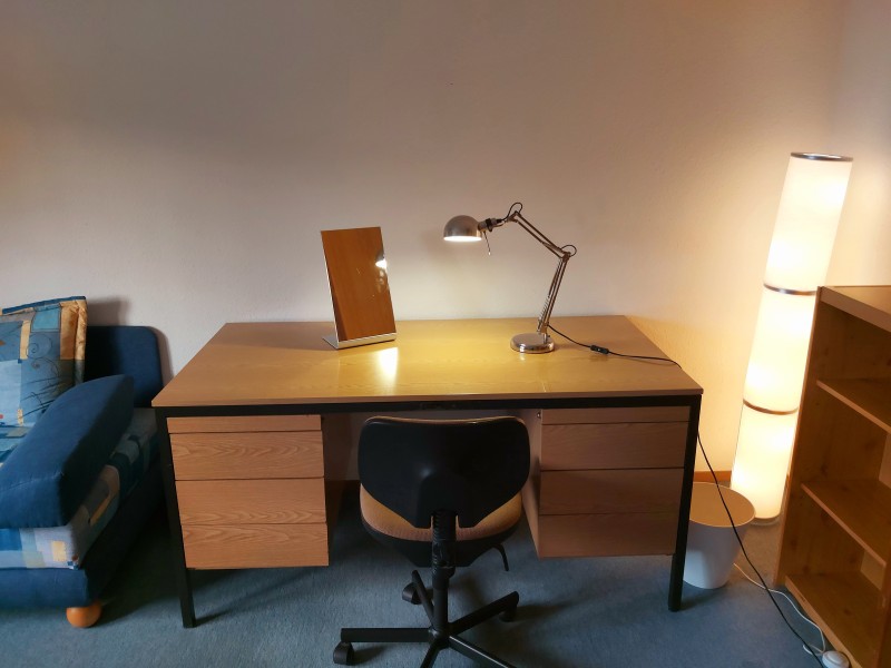 Eine ganz schöne Wohnung in Mosbach! Nur für Frauen! Die Wohnung hat ein Schlafzimmer, das mit einem Bett, Sofa, Schreibtisch und Kleiderschrank ausgestattet ist, und eine Küche mit einem Esstisch, Kühlschrank, Ofen und sogar mit einer Mikrowelle. Das Badezimmer teilen Sie mit einer schönen Nachbarin (Studentin) von unten.