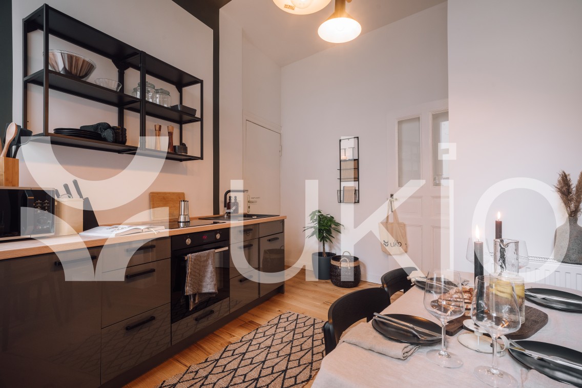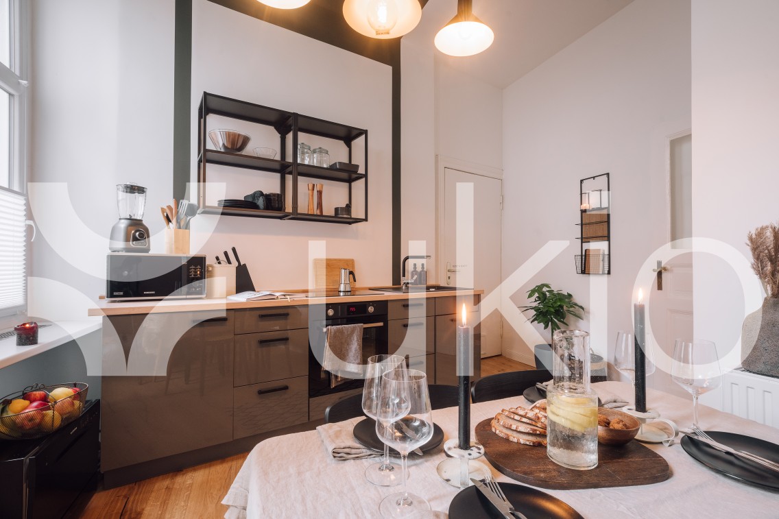 Escalo's design combines wooden accents with rough raw materials, influenced by the serenity of the mountain. Located in the upscale Wilmersdorf neighborhood, this apartment is abundant in international restaurants, shops, and theaters right outside your front door. When the day of exploring is finished, come home to Escalo for absolute indulgence.