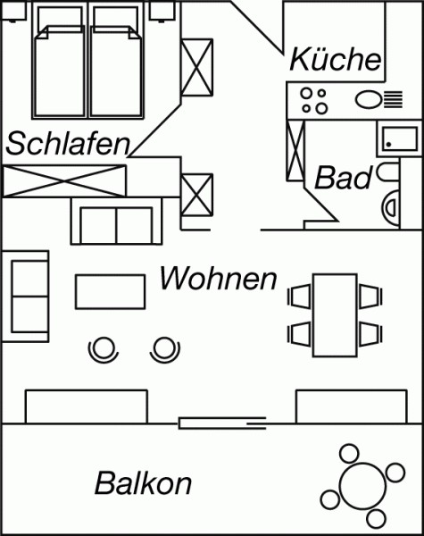Diese Wohnung ist nur für alleinstehende Personen oder für ein Ehepaar geeignet