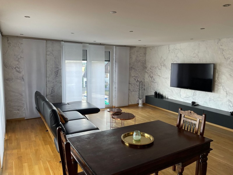 Diese neuwertige und helle Wohnung in der ersten Etage eines 6-Familienhauses verfügt über 4 Zimmer und besticht mit einer modernen Ausstattung. Eine Küche mit Spülmaschine, großem Kühlschrank, hochwertigem Induktionsherd ist bereit in der Miete mit inbegriffen. Das Bad verfügt über eine Badewanne sowie eine große Dusche und Doppelwaschbecken. Großer Balkon lädt zum Grillen ein. Ein Abstellraum (2m²) ist auch in der Wohnung.