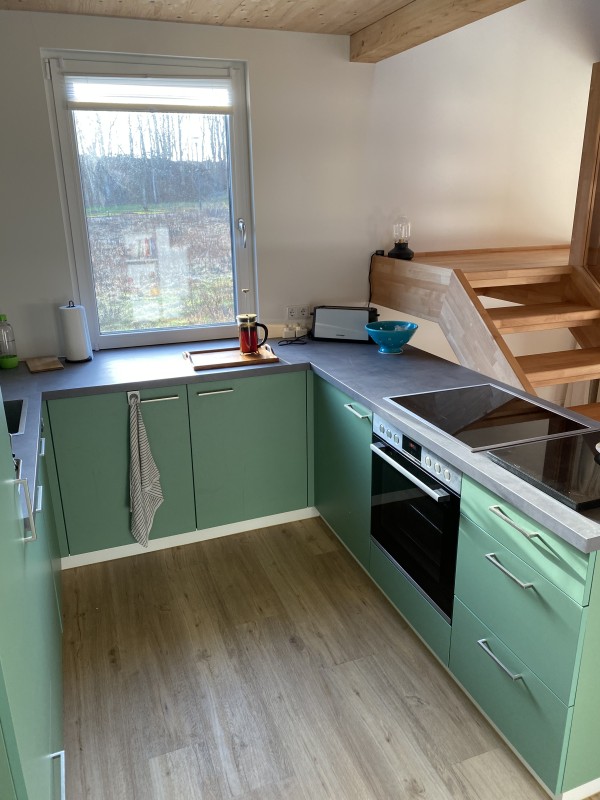 Anfang 2022 erbautes Haus mit modernem und offenem Grundriss. Im EG befindet sich neben dem großen Ess- und Wohnbereich ein kleines Duschbad und der Hauswirtschaftsraum. Im OG befinden sich neben einer kleinen Galerie ein großzügiges Schlafzimmer, ein Büro / Gästezimmer und ein Bad mit Badewanne.