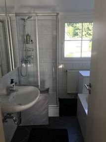 Nicht-einsehbare Dachterrasse, very private terrace, Ausblick ins Sauerland, wonderful view to the Sauerland, großer Wohnraum mit großzügiger Couch, big living room Schlafzimmer mit 1.40 Bett, Küche mit Spülmaschine, kitchen with dishwasher, kleinem Esszimmer, Holzfussboden, wooden floor, helle, schöne Ausstattung, very light and warm atmosphere, Bad mit Badewanne, Dusche und Waschmaschine, shower, bath tub and washing machine, separate Toilette, Eigener Eingang, separate entrance door, Auto Einstellplatz, car parking, ruhig, calm, ab sofort zu vermieten.