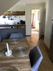 Hier fühlt man sich einfach wohl! Die Wohnung ist warm und hell eingerichtet und der Holzfussboden schafft eine gute Atmosphäre. Sie liegt in einem 3 Familienhaus mit separatem Eingang. Man ist absolut für sich! Es gibt keinerlei Lärmbelästigung und im nahen Wald kann man wunderbar joggen und spazieren gehen. The near forest invites you for jogging and walks. free Wlan. The Appartement is very suitable for Expats!