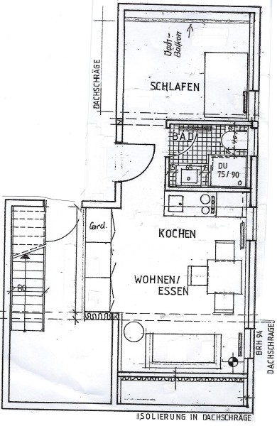 Schöne Einzimmer-Dachgeschosswohnung mit Einbauküche und Dachbalkonfenster in Ebhausen