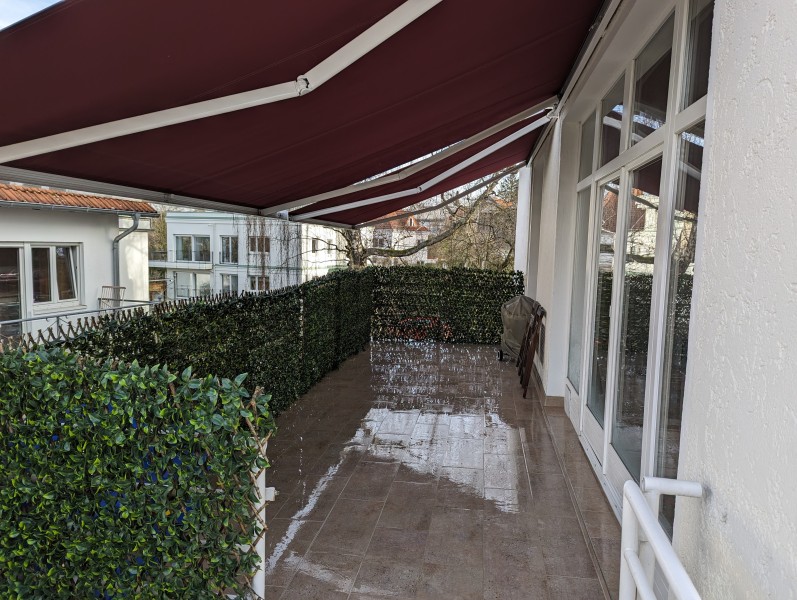 Dazu kommen ein geräumige Schlafzimmer mit Austritt auf die Terasse und direktem Zugang zum Bad und zwei weiteren Zimmern als Kinder- oder Arbeitszimmer. Dazu eine große Diele mit getrennter Garderobe und einer Gästetoilette.