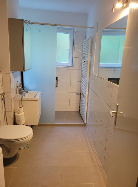 Bad und Küche sind nicht vor langen renoviert. Sowohl im Badezimmer als auch in der Küche wurden moderne, großformatige Fliesen verlegt.