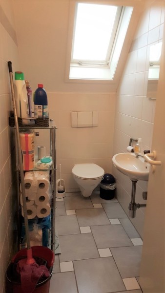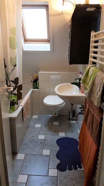 Für die 3 WG-Mitbewohner stehen 1 Badezimmer mit Badewanne, WC und Waschbecken und ein weiteres Badezimmer mit WC und Waschbecken zur Verfügung.