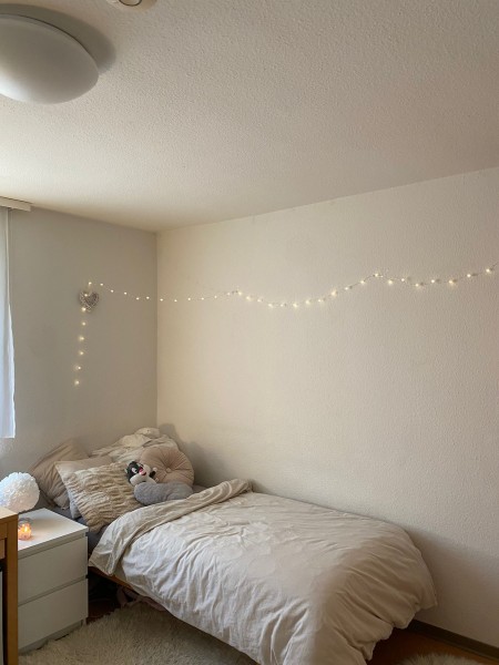 g: Es gibt eine großzügige Küche und eine getrennte Dusche, sowie WC. Zweimal die Woche kommt eine Putzfrau, um die Gemeinschaftsräume (die mit den zwei anderen Mitbewohnern geteilt werden) zu reinigen.