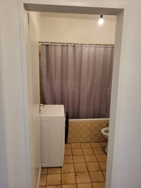 Im Bad befindet sich eine Waschmaschine, Badewanne und Spiegelschrank. Internet und W-Lan sind vorhanden, und bereits in der Kaltmiete berücksichtigt