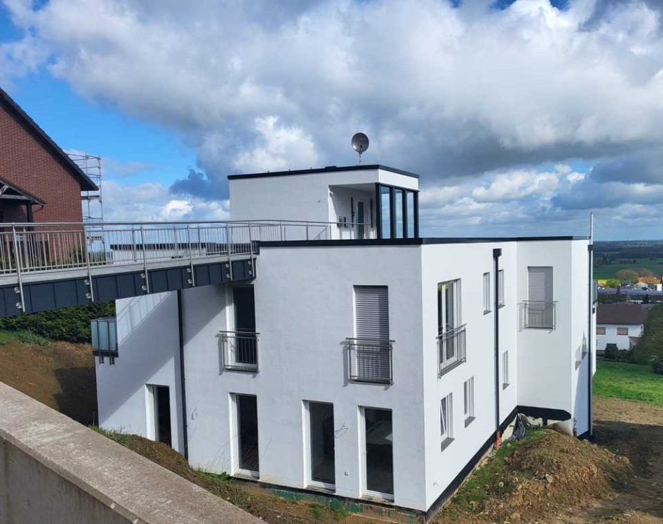Der durchdachte Grundriss teilt sich in einen großen hellen Wohnbereich mit offener Küche, 2 Schlafzimmer , Bad, Gäste WC ,sowie einen Hauswirtschaftsraum auf.