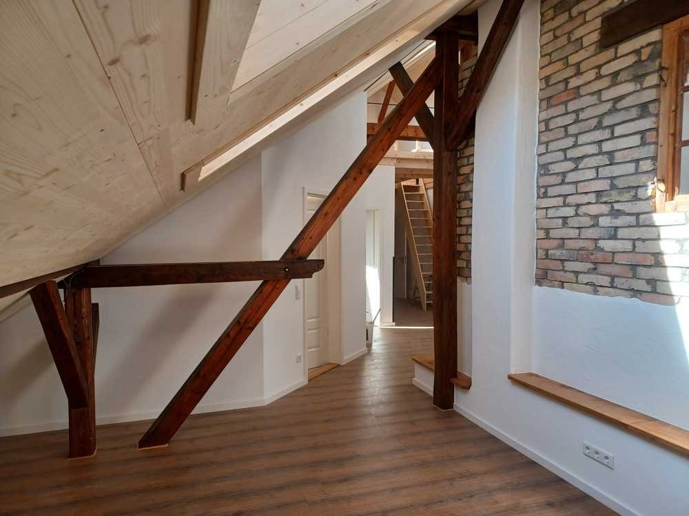 Wunderschöne, helle, stilvolle Dachgeschoßwohnung im 2. Stock ab dem 01.12.2025 zu vermieten. im Loftkarakter. Mit Galerie, Bad, Schlafzimmer, Wohnzimmer, großem Flur und großer, geräumiger Küche mit Essbereich. Stellplatz vor dem Haus und Abstellraum im 1. Stock.