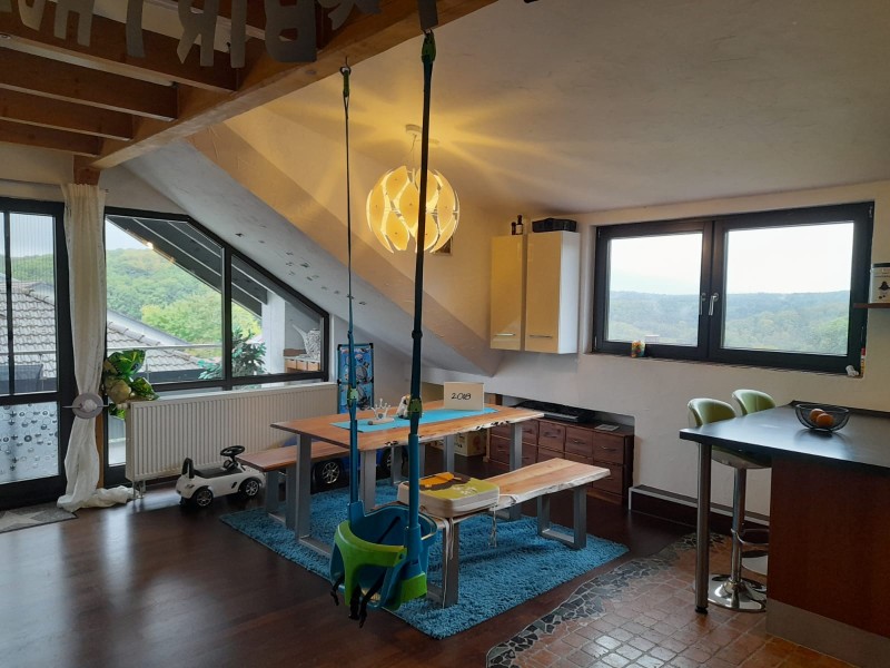 Schöne, offene Dach Maisonnette Wohnung mit Balkon
