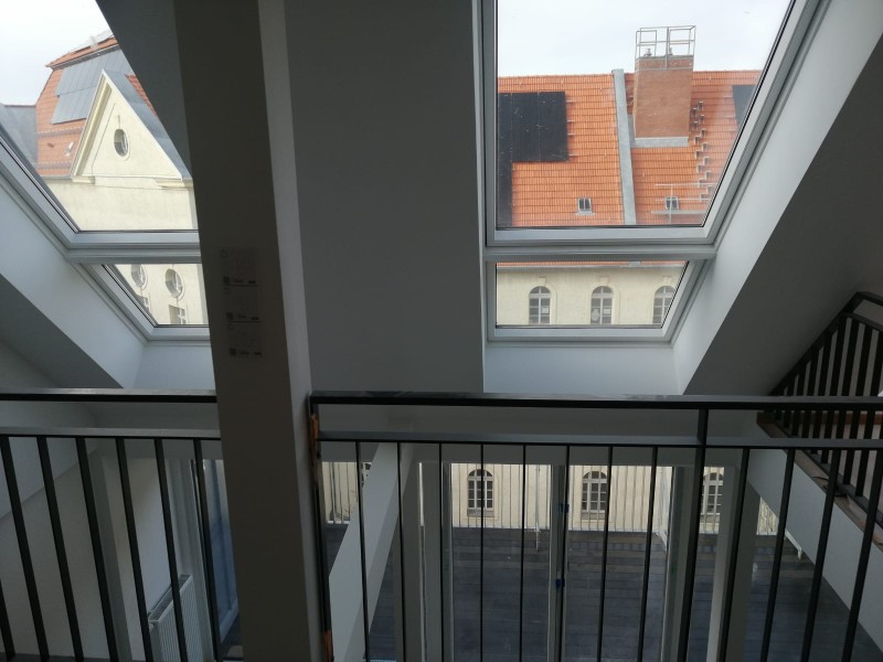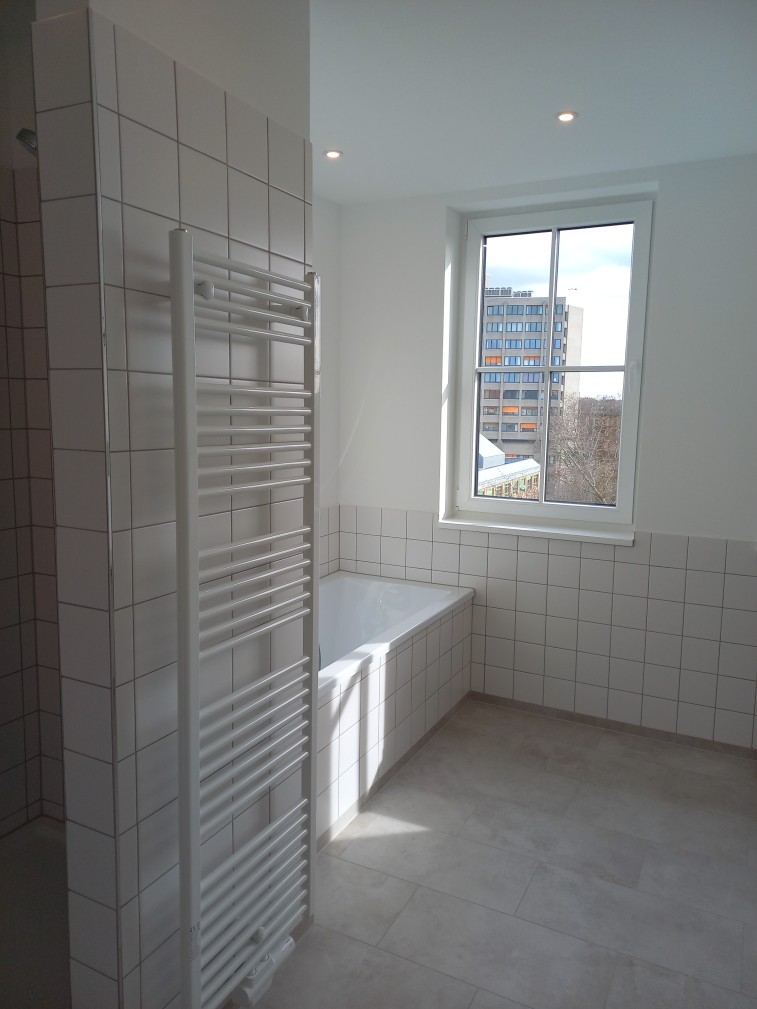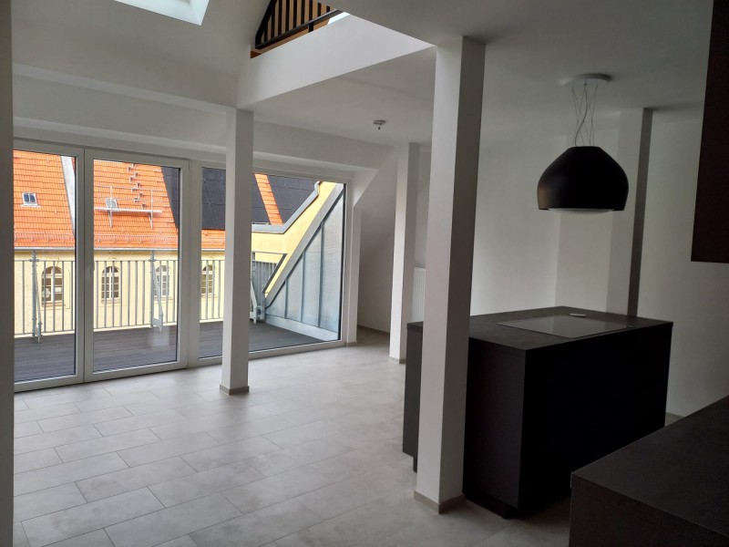 Diese sehr schöne Maisonette-Wohnung in der fünften Etage wurde auf einem Altbau neu errichtet. Zu dem Objekt zählen neben zwei einladenden Zimmern nicht nur ein Wannenbad sondern auch ein separates Gäste-WC. Nach dem Eingangsbereich betritt man eine Wohnküche und es gibt eine Treppe zur offenen Galerie. Die zwei etwa gleich großen Zimmer eignen sich auch für eine WG.