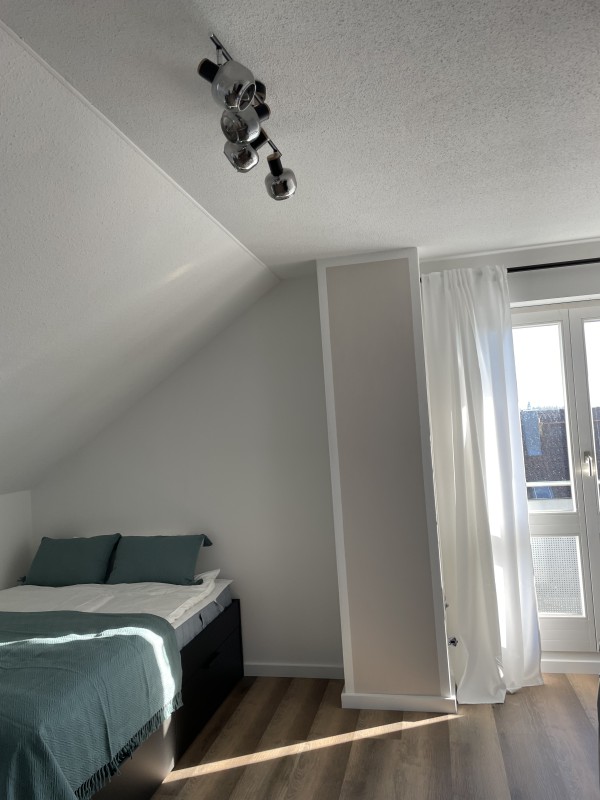 Vermieten ein möbliertes Zimmer mit circa 18 m2 in 3.Stock in einer sehr gepflegte Wohnanlage mit 8 Wohneinheiten, mit sehr schöne Aussicht. Die helle, gut geschnittene 3-Zimmerwohnung wurde im Januar 2023 neu renoviert und komplett neu eingerichtet. In allen Zimmern sind weiße Heizkörper in einem neuwertigen Zustand. Das Bad und die Küche ist weiß gefliest. Im Bad befindet sich eine Badewanne, eine Toilette, sowie ein Waschbecken mit Schubladen und einen Waschtrockner. Alle Zimmer sind mit hellem Vinylboden ausgestattet. Die Fenster sind aus weißem Kunststoff.