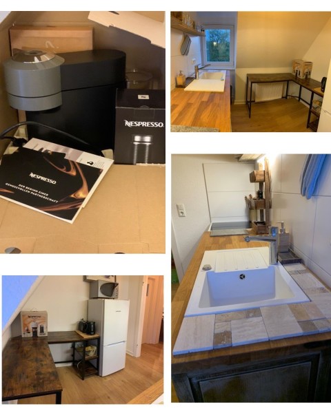 [Unter anderem ein Ethanol Kamin, nagelneue Nespresso Kaffeemaschine, Massivholzmöbel aus Handarbeit, extravagantes Kunstgemälde, echter Kuhfell Teppich, ein weißes Granitspülbecken, große Pflanzen]