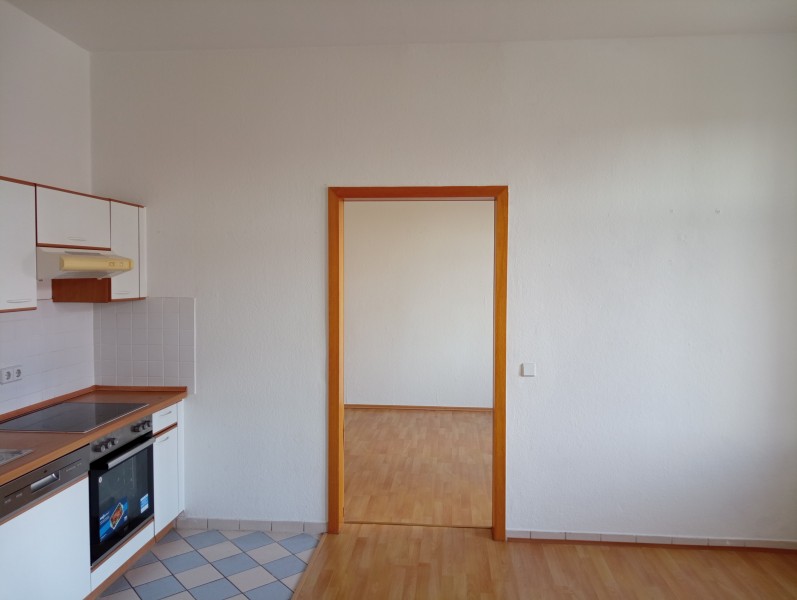 Die Wohnung befindet sich in der 1. Etage im Vorderhaus eines Mehrfamilienhauses und verfügt über zwei Zimmer (davon ein Durchgangszimmer mit Einbauküche - inklusive Elektrogeräten - siehe Bilder), Bad gefliest mit Wanne und mit 2 Fenstern, Flur, Abstellraum und Keller. Ausreichend Stellplätze sind vor dem Haus verfügbar.