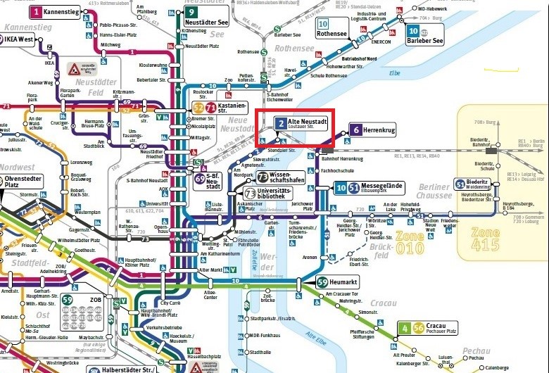 Die Wohnung ist zentral in der Nähe der Universität (nur 5 Haltestellen) gelegen, zur nächsten Haltestelle Linie 2 sind es zu Fuß 2 Minuten, in der Nähe befindet sich außerdem ein Aldi, Lidl etc. außerdem der Wissenschaftshafen, Fraunhofer- und Max-Planck-Institut.