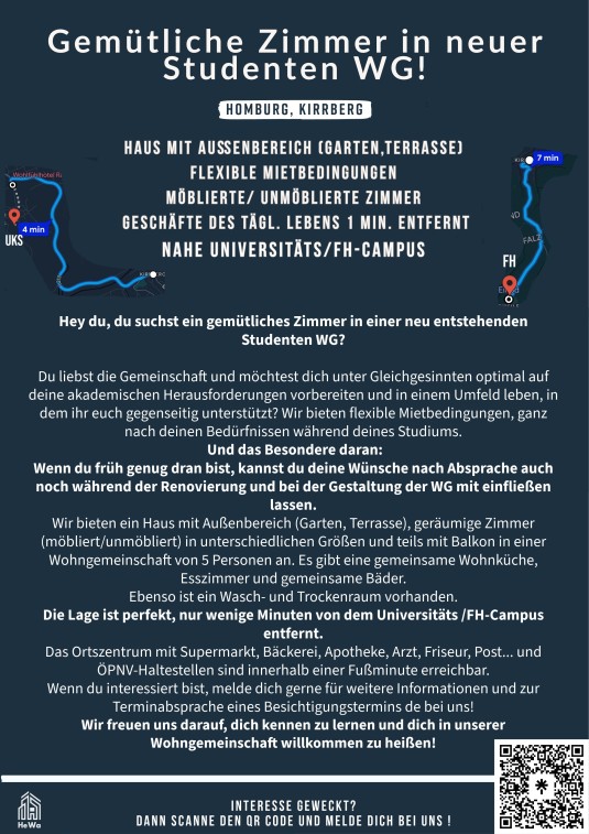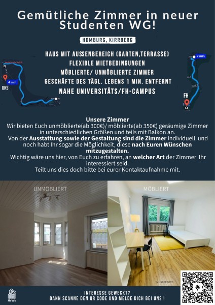 Wenn du interessiert bist, melde dich gerne für weitere Informationen und zur Terminabsprache eines Besichtigungstermins per WhatsApp 0170/5357745 oder per Mail: wg-homburg@web.de bei uns!