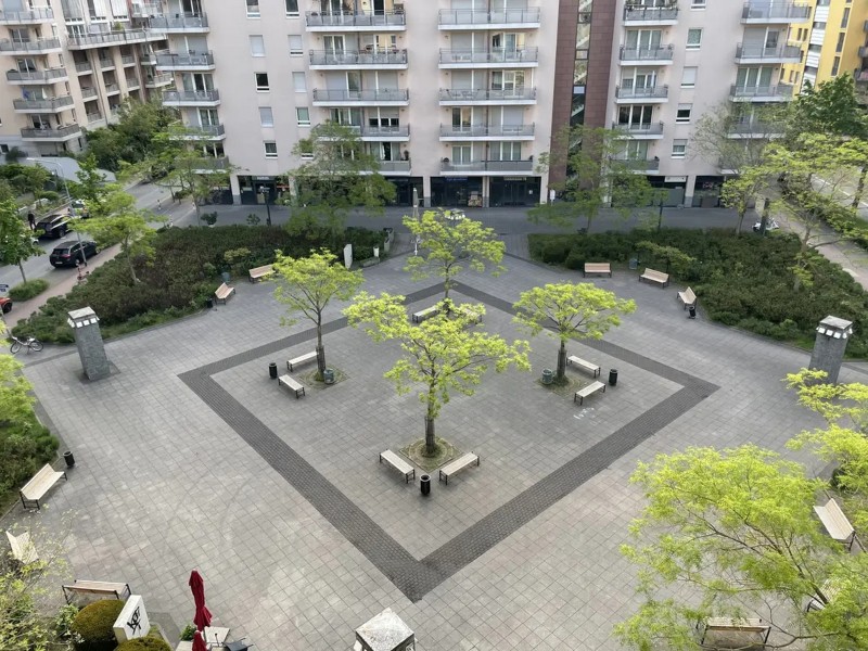 angenehme Restaurants in unmittelbarer Nähe. Einmal in der Woche findet auf dem schönen Platz vor dem Balkon ein Markt statt.