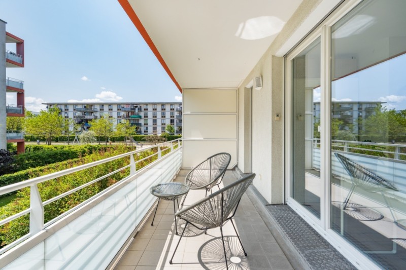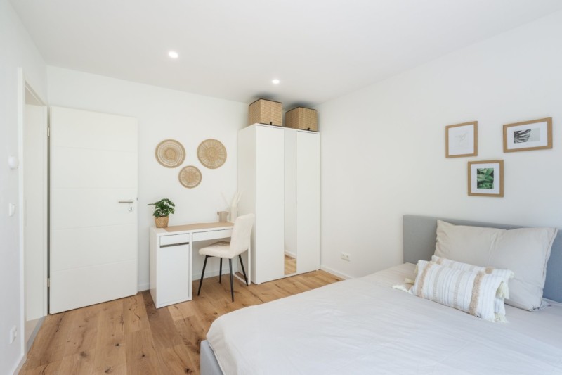 Innerhalb der Wohnung gibt es 3 helle und attraktive Zimmer, ausgestattet mit hochwertigen Fliesen und Parkettböden.