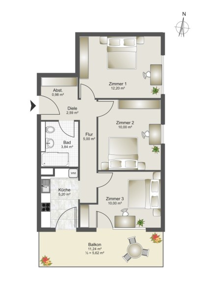 • Zimmer 3 ca. 9m² + Balkon | 850€ kalt zzgl. 75€ Nebenkosten