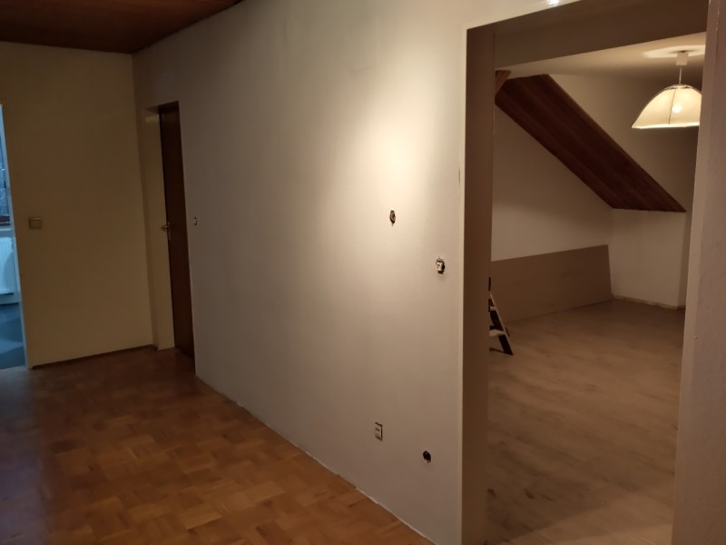 Die Wohnung hat 2 große Räume, eine Wohnküche und einen kleinen zusätzlichen Raum. Alle Räume haben große Fenster und sind deshalb sehr hell. Der Flur der Wohnung ist groß und geräumig und bietet Platz. Zusätzlich hat die Wohnung ein frisch renoviertes WC, sowie ein frisch renoviertes Bad mit Dusche und Badewanne.