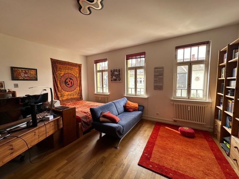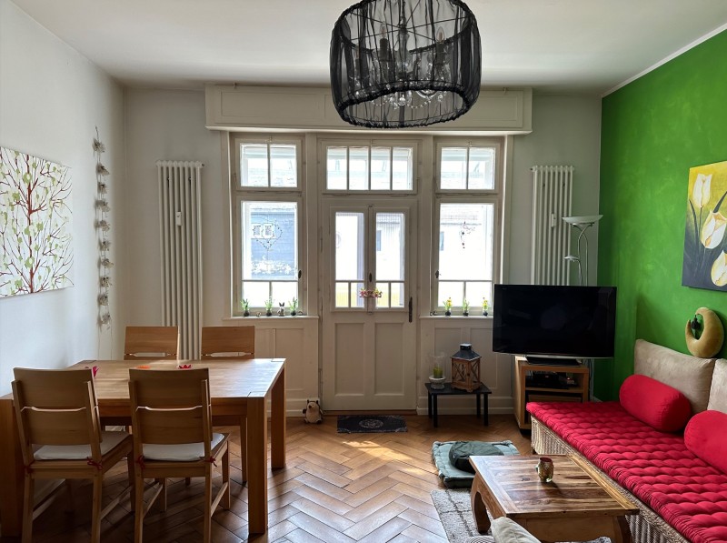 Das Haus ist Teil eines Gründerzeitensembles und liegt in unmittelbarer Nähe des Liederbachparks. Wir haben das Haus denkmalgerecht saniert und in diesem Zusammenhang das 3.OG neu strukturiert; Fenster sind aufgearbeitete Originale mit entsprechenden Beschlägen, die Wohnungstür und Zimmertüren sind ebenfalls Originalbauteile.