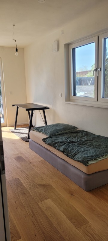 Das wunderschöne Gartenzimmer mit Balkon hat ca. 15qm und befindet sich im 1. OG einer neugebauten Doppelhaushälfte.
