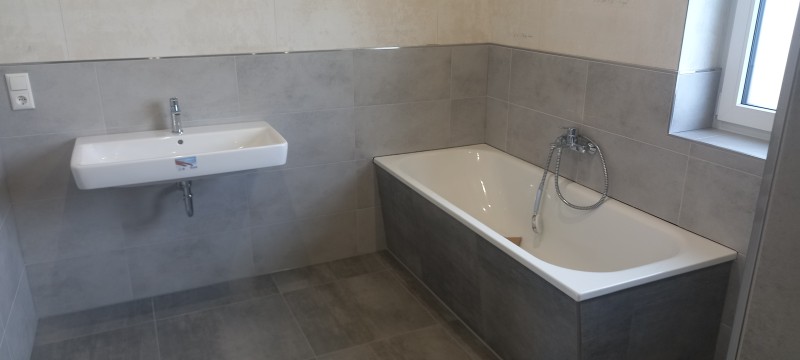 Badezimmer,Flur,Abstellraum,Wohnzimmer und Küche sind komplett gefliest
