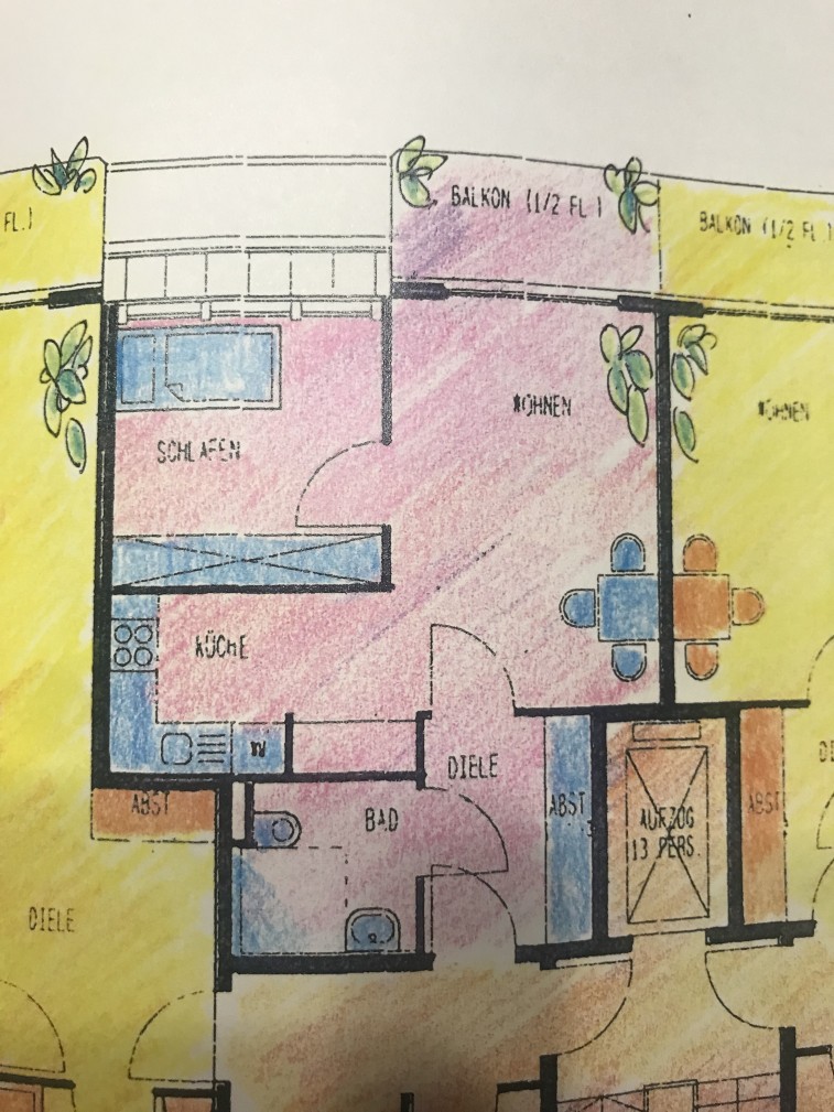 Nasszelle raumhoch gefliest. Balkon hat elektrische Markise. Einbauküche ist neu. TU wäre auch zu Fuß bzw. Fahrrad zu erreichen.