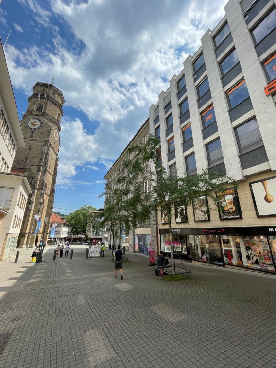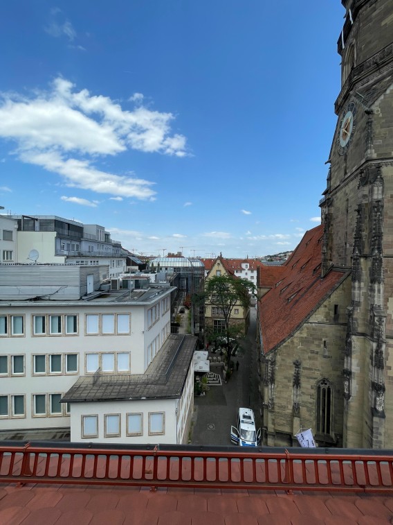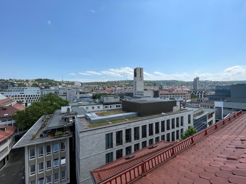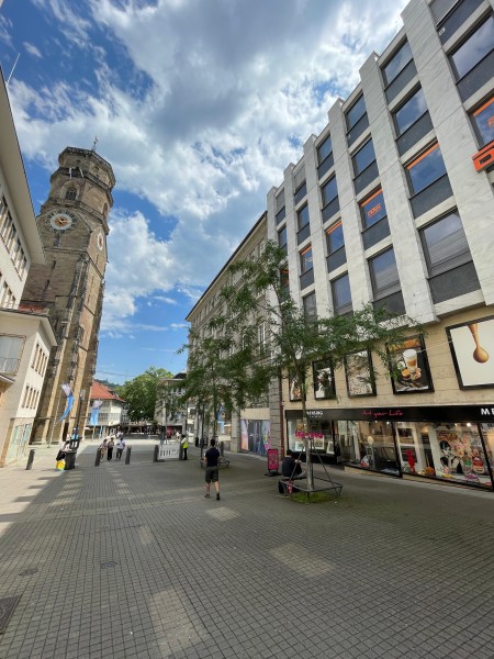 1aaa Lage in der Fußgängerzone Schönes Zimmer mit Blick auf die Stiftskirche (Altstadt)...Mitten in der Fussgängerzone Königsstraße, Ecke Stiftskirche, bewohnen wir als einzige Bewohner das wunderschöne, neu sanierte Stadtpalais von 1870 in einer sehr großzügigen (ca. 120qm) Dachgeschosswohnung (Aufzug). Fussläufig erschließt sich uns das ganze Stuttgarter Innenstadtleben in dieser besonderen Lage.