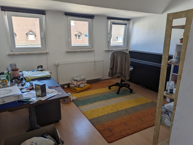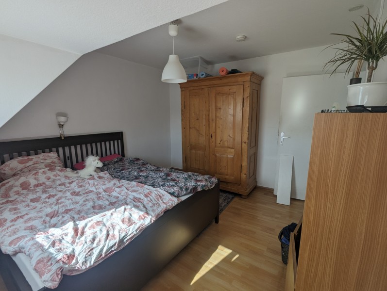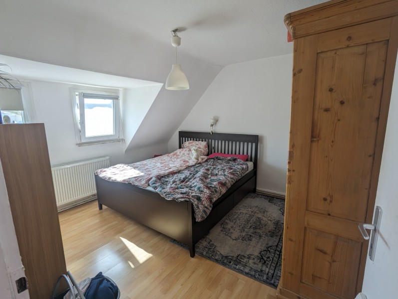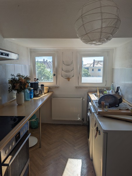 Die gemütliche 3-Zimmer-Wohnung, plus Küche und Bad im 3. Obergeschoss mit Keller wird frei. Sie eignet sich zum Alleinewohnen, für Paare oder eine WG. Wenn man sich für eine WG entscheidet, ist eine Aufteilung auf 2 Schlafzimmer und ein gemeinsames Wohnzimmer möglich. Die Küche, Waschmaschine und einige Möbel müssten gegen Abschlag mit übernommen werden. Dazu zählen Waschmaschine, Herd, die weißen Kommoden im Wohnzimmer, das Sofa, ein Schreibtisch, 2-3 Bücherregale. Ich habe knapp 4 Jahre (erst als WG, dann mit meinem Freund) hier gewohnt. Durch die Schrägen erscheint die Wohnung größer.