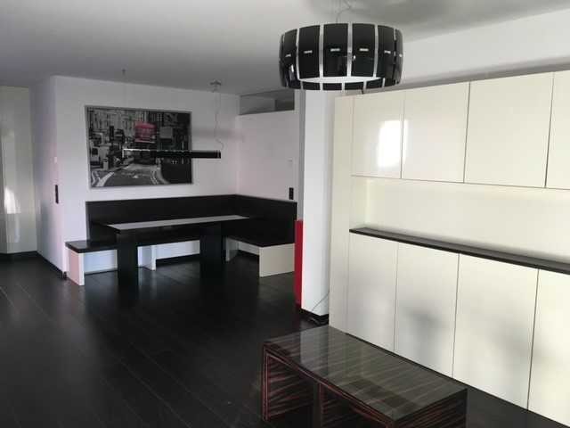 Das Besondere daran, die Wohnung in Wendlingen ist nicht nur mit einer hochwertigen Küche vom Schreiner ausgestattet, sondern mit umfangreichen Einbauschränken, moderner Eckbank und Designer-Lampen.