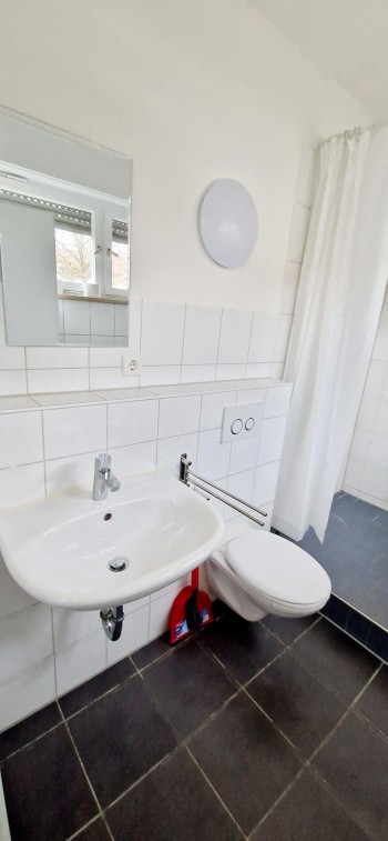 •Duschraum mit Dusche, WC, •Waschbecken und Spiegel
