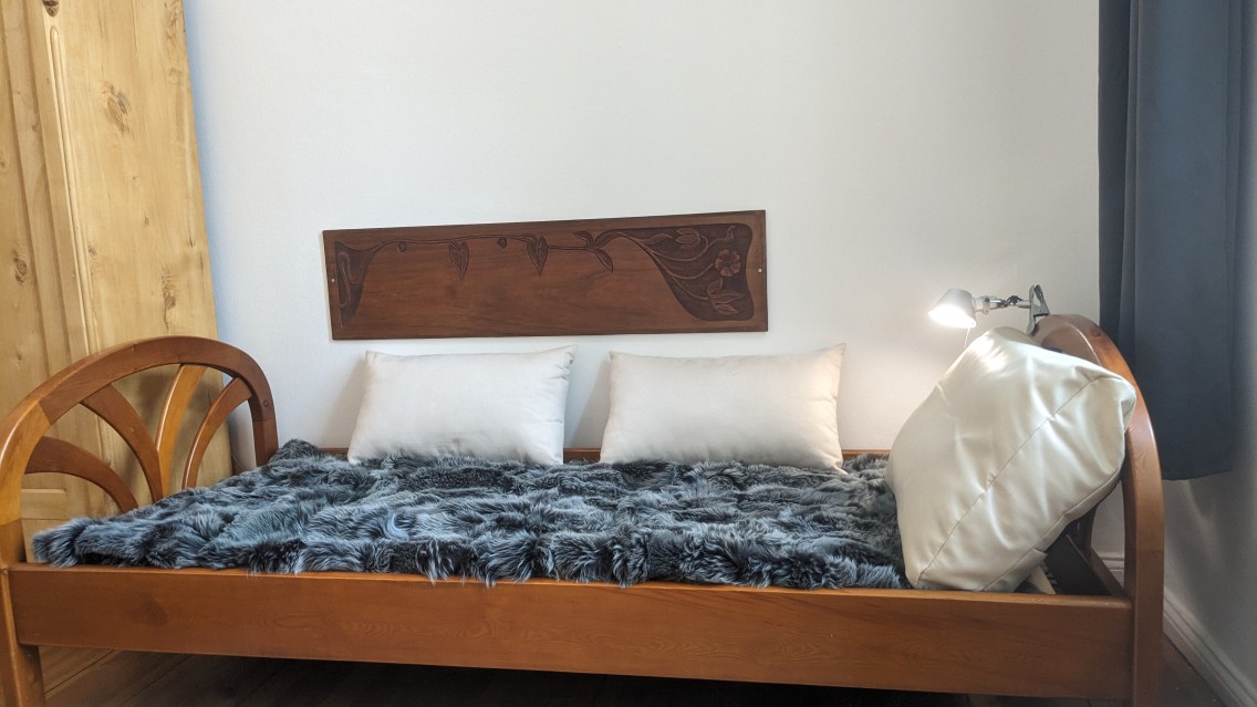 The apartment is 100sqm, with gold tuck, high doors, old parquet, chic 30sqm large kitchen with balcony, elegant airy furnishings, washing machine, dishwasher, complete kitchen equipment, broadband, central heating, bicycle parking in the yard.