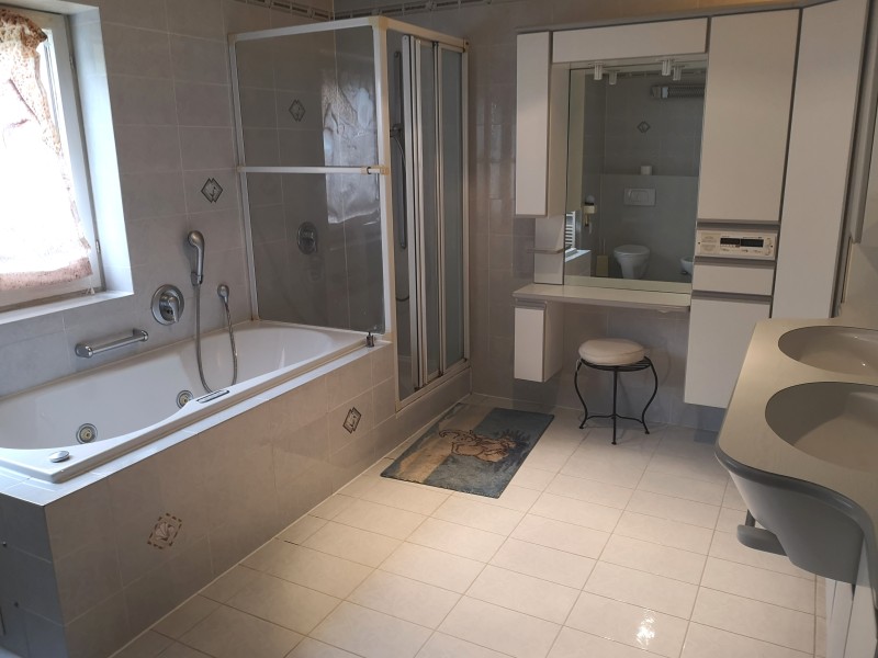Die Wohnung auf drei Etagen ist vorwiegen mit Parkettböden ausgestattet, lediglich im Bad und im Erdgeschoß sind Fliesen verlegt. Im Wintergarten und im Bad gibt es eine elektrische Fußbodenheizung. Die beiden Balkone sind zur Südseite ausgerichtet, was die Wohnung schön hell macht. Es gibt eine begehbaren Einbaukleiderschrank in Vollholz und in den Fluren und auf den Balkonen Schrankwände für zusätzlichen Stauraum. Im Bad befindet sich eine Badewanne mit Whirlfunktion, Dusche und zwei Waschbecken sowie WC. Im Erdgeschoß befindet sich eine Gäste-WC. Die Einbauküche ist in Vollholz, Eiche hell. Es gibt eine überdachte Terrasse mit Stromanschluß und Beleuchtung. Der Garten in Stufen ist zur Nutzung frei. Die Garage mit elektrischem Tor bietet Platz und ist mit Stromanschluß, Starkstromanschluß und Wasseranschluß versehen. WLAN-Anschluß und Kabel-TV-Anschluß sind vorhanden.