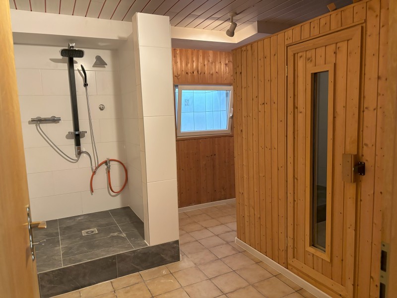 Das Haus hat Warmwasserkollektor für die Warmwasserversorgung und eine neue Pelletheizung.