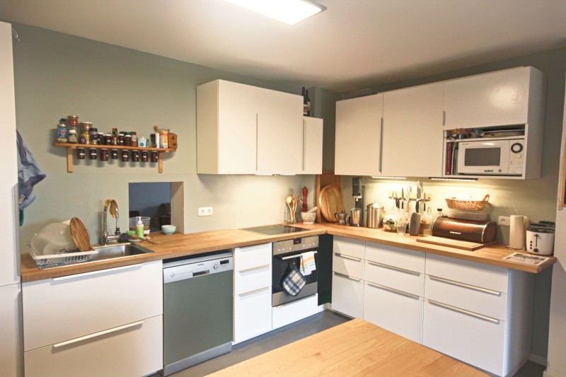 Das Haus ist groß und es gibt viele Gemeinschaftsflächen. Wir haben eine große, neue Küche, Wohnzimmer, eine Terrasse und Garten. Außerdem haben wir (Luxus!!!) 3 Bäder, sodass man sich nie in die Quere kommt.