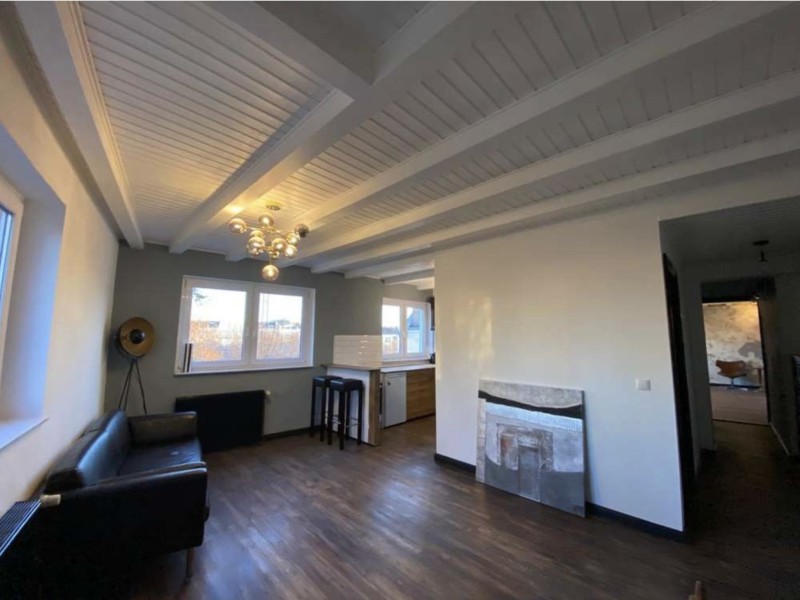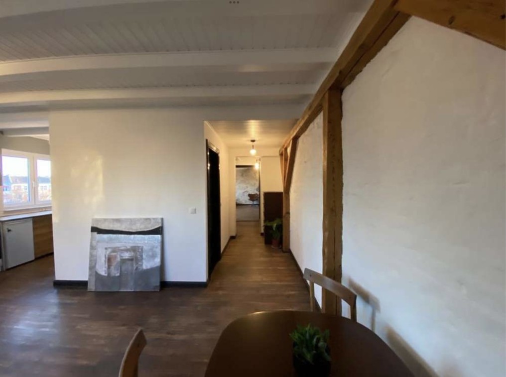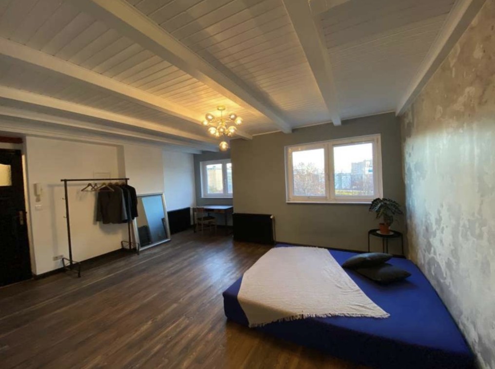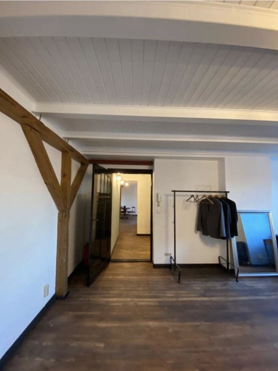 Die 67 Quadratmeter große Wohnung besticht durch eine luxuriöse Innenausstattung mit freigelegten Ziegeln, originalen Holzbalken und Echtholzparkett. Sie kombiniert den Charme einer Altbauwohnung mit modernem Innendesign.