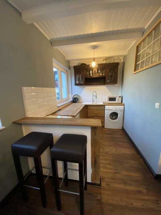 - Küchenzeile mit zwei Echtleder-Barhockern