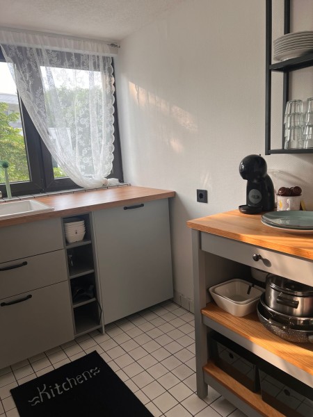 Voll ausgestattete Küche: Die Küche ist mit modernen Geräten ausgestattet, darunter ein Kühlschrank, Ofen, Herd, Mikrowelle sowie alle notwendigen Kochutensilien und Geschirr.