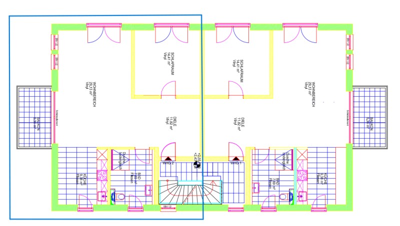 Im Erdgeschoß steht der Hausgemeinschaft ein Fahrradraum sowie ein Wäscheraum zur Verfügung. Ebenso befinden sich dort für die Dachgeschoßwohnung 2 PKW- Stellplätze und der Kellerraum.
