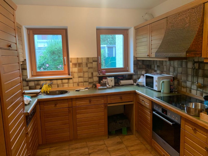 Das Zimmer befindet sich im 1. OG. Das Badezimmer im 1. OG ist mit einer WG-Person zu teilen, es gibt insgesamt 3 WCs. Für jede WG Person 1 WC. Die WG Personen im 2. OG haben ein eigenes Bad. Die Gemeinschaftsküche, das EG ist nicht vermietet und somit stehen die Räumlichkeiten im EG und Keller für alle zur Verfügung, d.h. Küche, Wohnzimmer, auch Terrasse und Garten für alle begehbar und benutzbar. Im Keller befindet sich ein Waschraum mit Waschmaschine und Möglichkeiten zum Wäsche aufhängen.