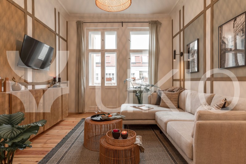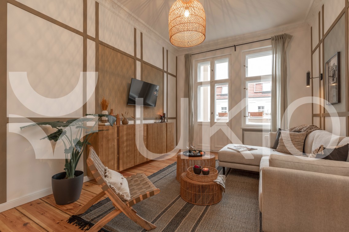 In this signature Ukio apartment in Berlin, embrace comfort and indulgence with detailed design touches that reflect the grassland. Your stay comes complete with fresh linens and towels, high-speed internet, a smart TV, and a Crosley Bluetooth speakers. When you're in need of some outdoor fun, the Prenzlauer Berg neighbourhood provides great vibes and diverse hotspots to visit.