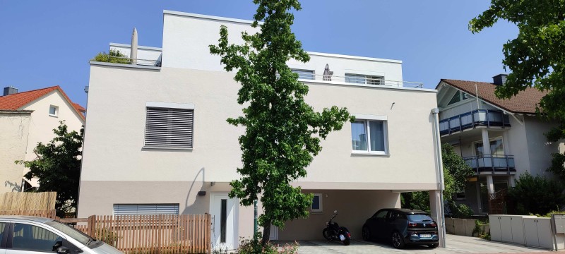 Die Stadt ist zu allen Seiten von Feldern und daran anschließend von Waldgebieten umgeben. Der Wohnhaus Neubau liegt in einer begrünten Seitenstraße, mit Einbahnstraßenverkehr, unmittelbar angrenzend an die Altstadt und in direkter Nähe ( 3 Gehmin.) zur S-Bahnstation Dietzenbach Bahnhof (Linie S2)
