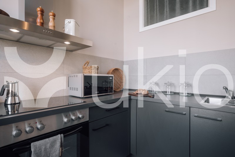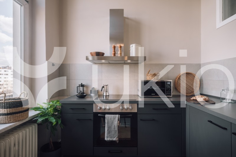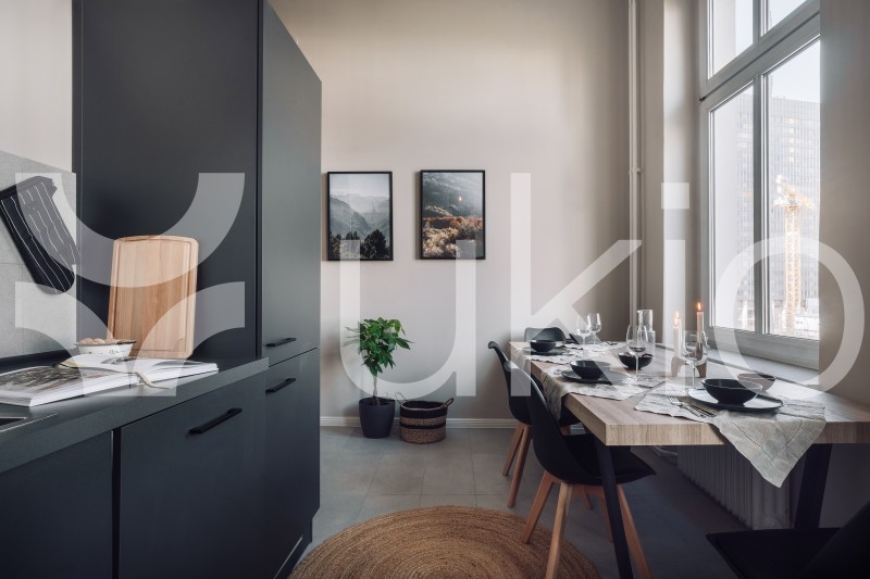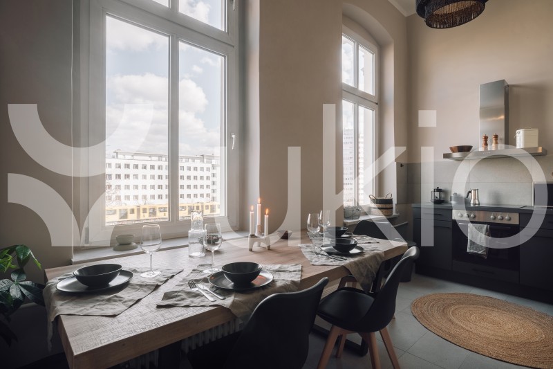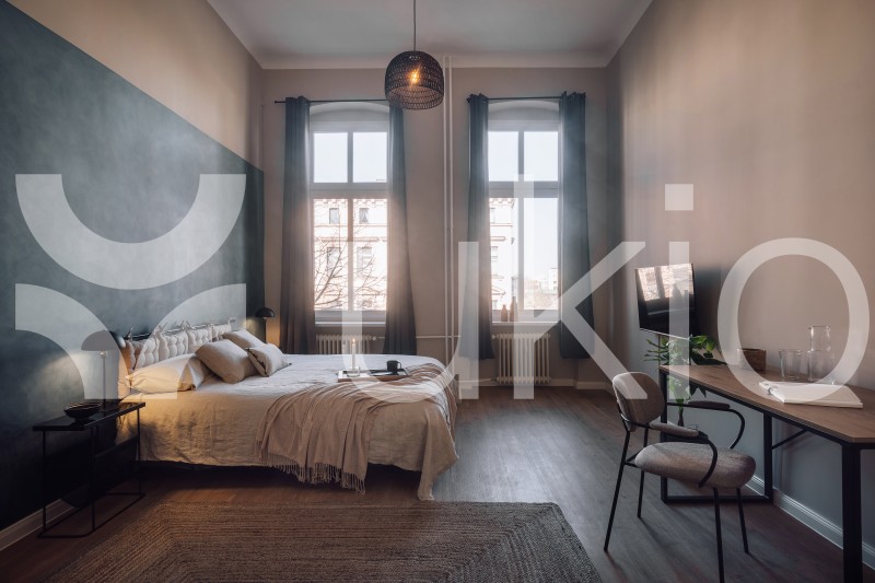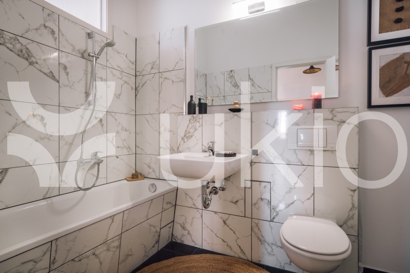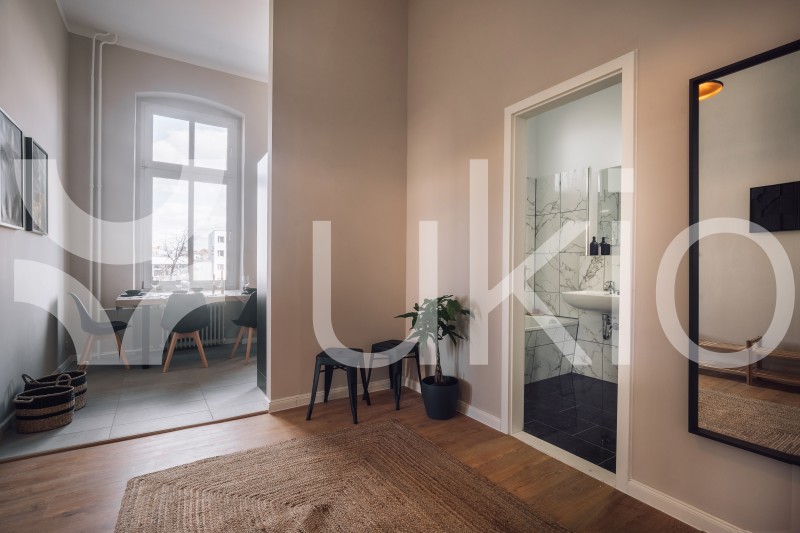 Welcome to Muga, a stylish and cozy apartment in Berlin's vibrant Kreuzberg neighborhood. This elegantly designed space offers a luxurious stay with a bright living room featuring a mountain theme, a dedicated workstation, and a sofa bed for guests. The fully equipped kitchen with a dining table is perfect for meals, while the bedroom ensures comfort with a queen-size bed and ample storage. The marble-tiled bathroom with a bathtub adds a touch of relaxation. Centrally located, Muga provides easy access to Kreuzberg's top attractions, making it ideal for both work and leisure stays. Fully furnished, it includes all essentials.