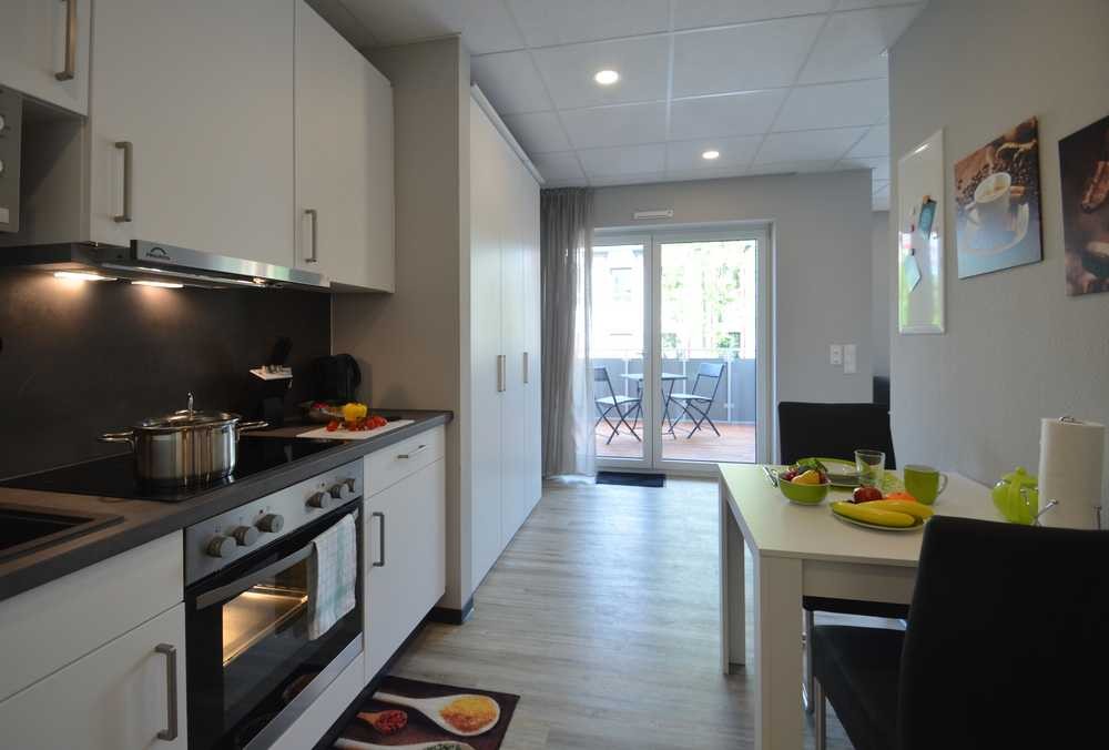 1-Zimmer-Apartment mit separatem Bad, Single-Einbauküche umfangreich ausgestattet, Einrichtung, Bettwäsche und Handtücher.... alles vorhanden. Unkompliziert buchen und einfach einziehen!