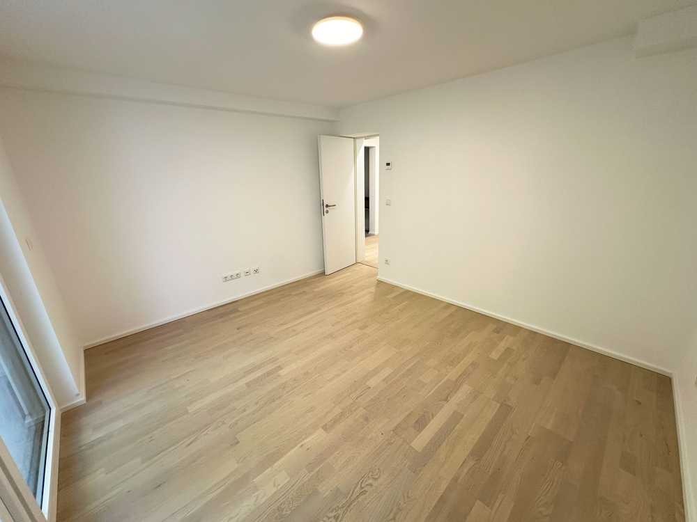 Das Schlafzimmer bietet viel Platz und sorgt durch das Echtholzparkett für eine warme und ruhige Atmosphäre.