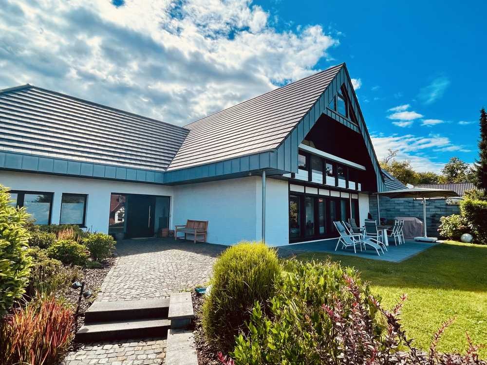 Der große, nicht einsehbare Garten wird im Sommer zum 2. Wohnzimmer, der Pool kann das ganze Jahr genutzt werden, die 2 Kinderzimmer im Obergeschoss haben durch Gauben noch mehr Platz und eine Sauna mit integrierter Dampfoption lassen das Wellnessherz höherschlagen.