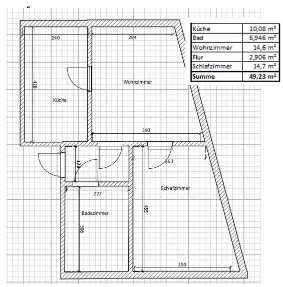 Es handelt sich um eine 2-Raum-Wohnung mit Küche, Bad und Flur